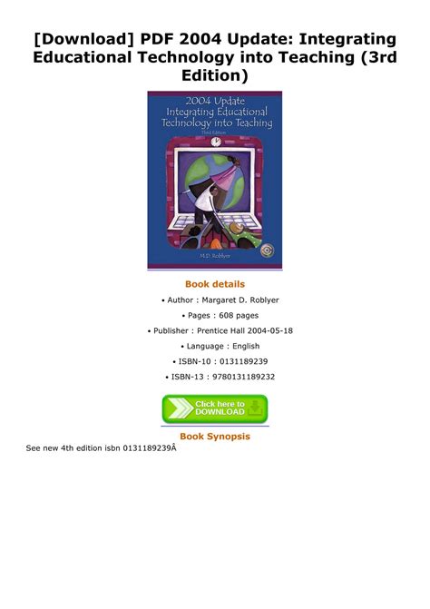 Download 2004 Update Integrating Educational Technology into Teaching 3rd Edition Reader By Click Button. 2004 Update Integrating Educational Technology into Teaching 3rd Edition it’s easy to recommend a new book category such as Novel, journal, comic, magazin, ect. You see it and you just know that the designer is also an author and understands the challenges involved with having a good book. You can easy klick for detailing book and you can read it online, even you can download it